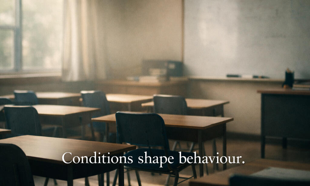 Much of what gets labelled as a behaviour problem is often better understood as a response to pressure, environment, nervous‑system load, and emotional overwhelm.When attention moves away from blame and toward understanding conditions, many teachers find that some of the weight lifts. They often leave feeling steadier, less alone, and less harsh on themselves.This work is not about fixing you or fixing students. It is about helping things feel more understandable and less personal.